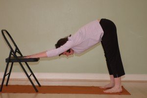 - Stand close to a chair, (or window ledge, kitchen counter, etc.). Bend your knees, place your hands on the chair and walk back until your legs are approximately perpendicular to the floor.